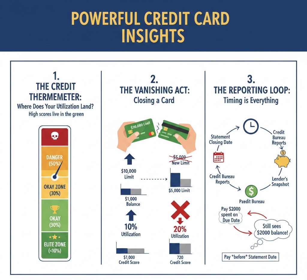 Most individuals tend to believe that it is sufficient to pay the bills on time. Although that is necessary, utilization constitutes approximately 30 percent of the majority credit scores. A high utilization implies a financial burden whereas a low utilization implies control and stability.